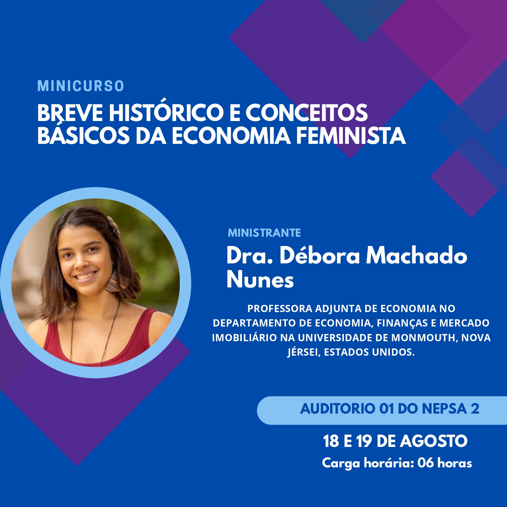 A conferencista Débora Machado Nunes é professora assistente na Monmouth University, nos Estados Unidos, leciona disciplinas como História do Pensamento Econômico, Economia Feminista e Comércio Internacional. Ali, também desenvolve estudos focados na economia feminista, com uma abordagem crítica inspirada no marxismo. Sua vinda ao Rio Grande do Norte representa uma oportunidade valiosa para aprofundar as discussões sobre a temática no Brasil.